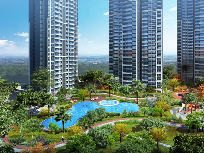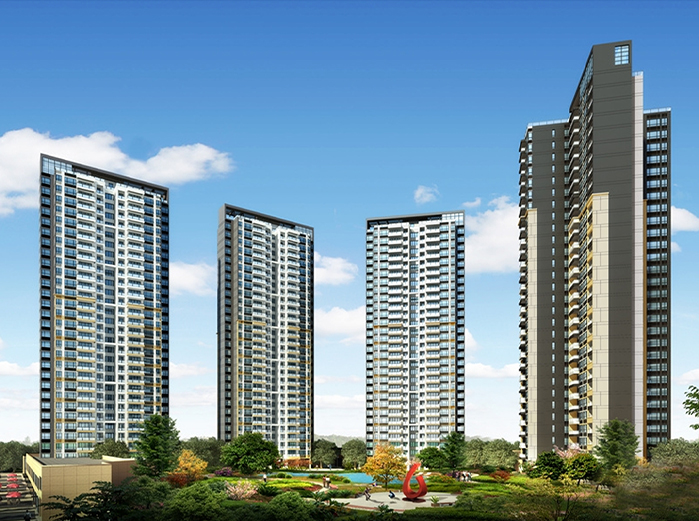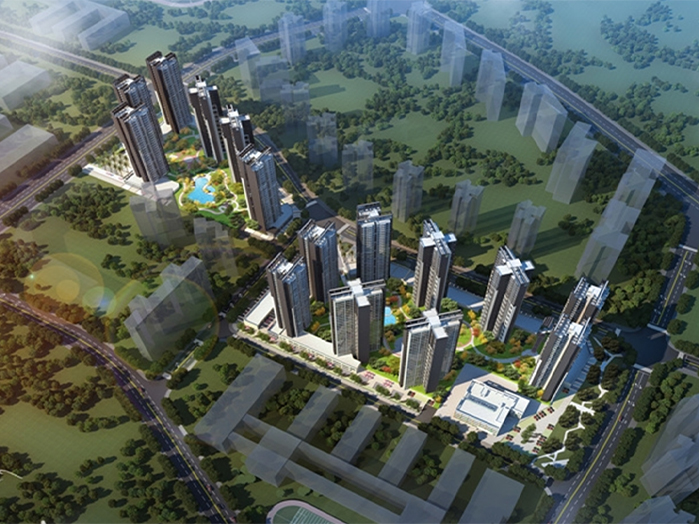 项目描述:总建筑面积266478m 2 ,高度92.7m,由北区9栋高层住宅和南区6栋高层住宅组成的综合性住宅商业中心。