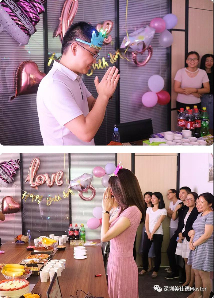 伴随着欢快的音乐,公司领导为寿星们戴上生日帽,送上了真挚的祝福和礼物,传达了公司对员工的关爱,让员工们一起感受“家”的温馨。