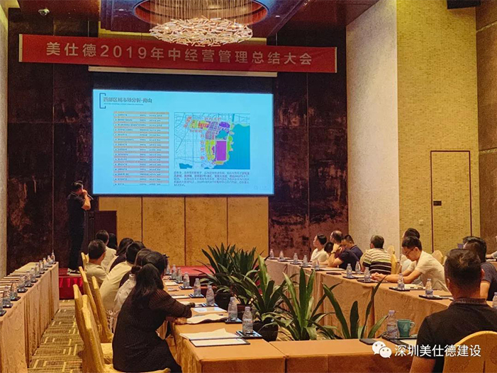 市场在哪里,商机就在哪里,只有把握住市场的变化规律,企业才能不断创新,抓住机会,实现我们的目标。商务部一直以来紧跟市场脉落,为企业的发展提供充足的项目储备。会上商务拓展部邓总分析了目前深圳房地产市场政策环境和业务拓展进度,并重点从福田区、龙岗区、罗湖区、龙华区市场商业占比等大数据进行了分析,定位了美仕德后续的市场战略准确性、区域性、方向性。进一步的分析了西部区域市场核心商业价值的重要性,同时将后海作为一个区域布局的突破点,未来将由点到面进行全方位的拓展,进一步提升美仕德的市场占有率。