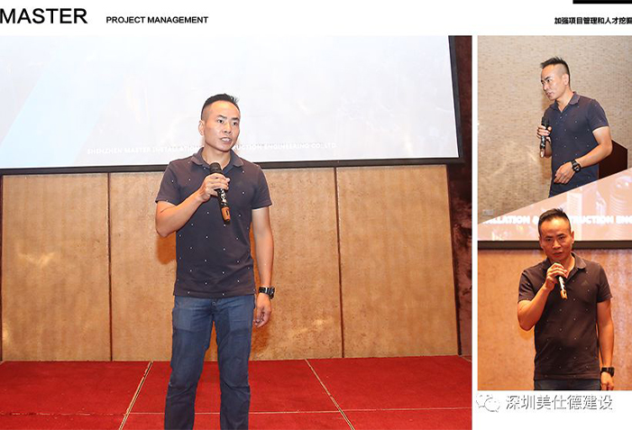 会议上沙一项目经理周光辉作为员工代表分享了他进入美仕德大家庭成长的点滴,以及他个人在工作管理上的经验交流和分享。