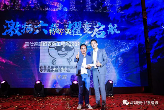 晚宴开始前,美仕德总经理刘海峰先生,向在场的全体员工以及出席晚宴的各位嘉宾,表示最诚挚的问候和最衷心的感谢,在发言中,刘总带领大家一起回顾了美仕德从起步到如今稳步发展的六年光辉历程,每一步的蜕变、探索与重生,都折射出美仕德人顽强拼搏、积极进取的精神。深展向星辰、生长向新生,值此2020新春来临之际,衷心的感谢辛勤奋斗的全体员工及鼎力支持的合作伙伴。